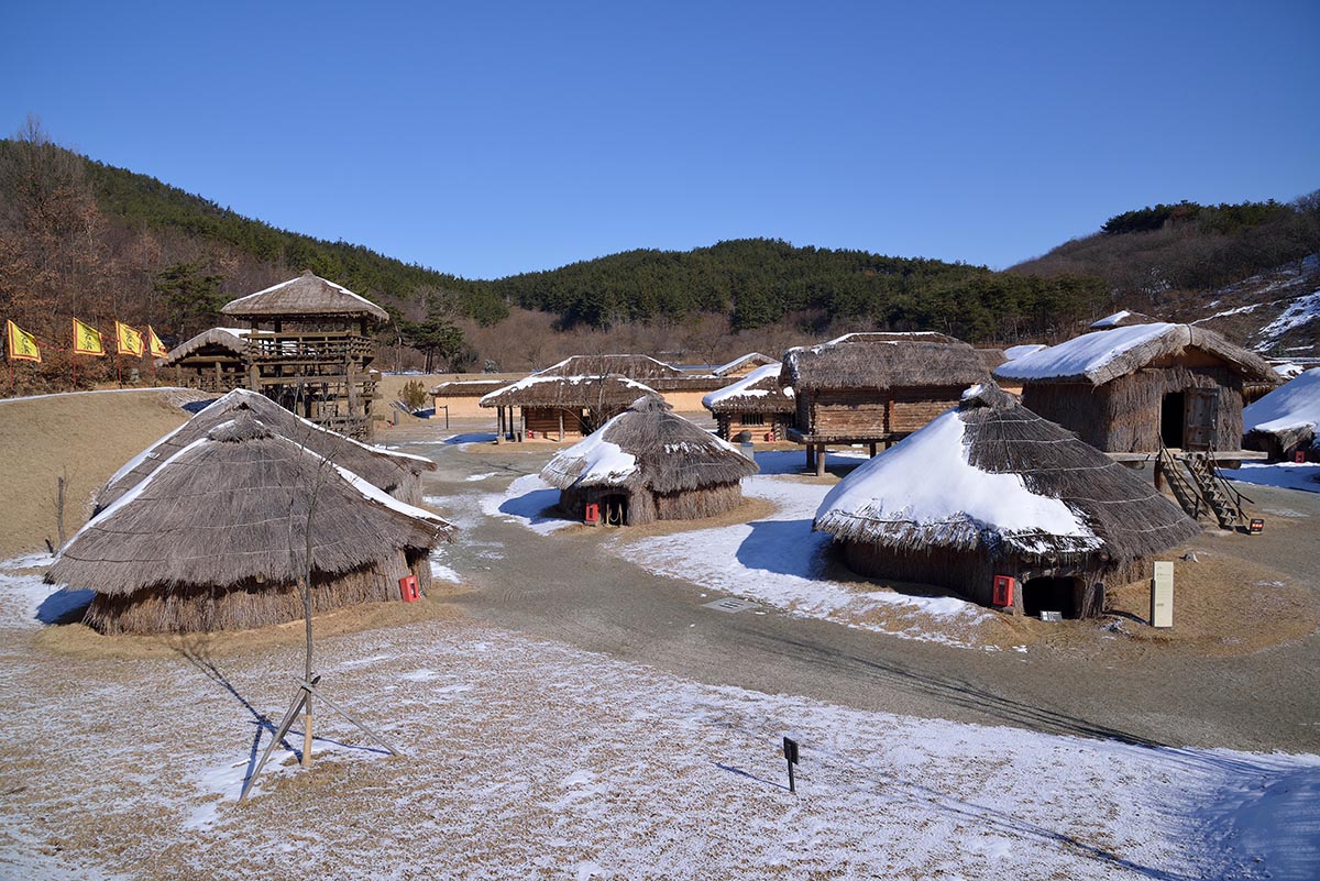 Can you see the dugout huts, which are similar to those found in the Amazon? These dugout huts were typical of the housing built during the early days of the Baekje Kingdom.