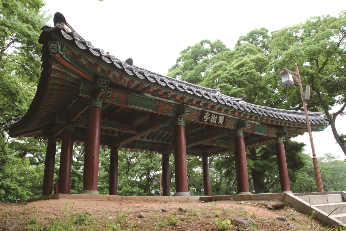 This pavilion is where King Injo of the Joseon Dynasty took refuge for six days and five nights during the rebellion of Yi Gwal. Legend has it that King Injo, who had been leaning against one of the twin trees called ssangsu while worrying about the palace in Seoul he had left, felt delighted upon hearing news that the rebellion had been subdued. It is said that to celebrate this occasion King Injo designated the twin trees as rank 3 high officials.
