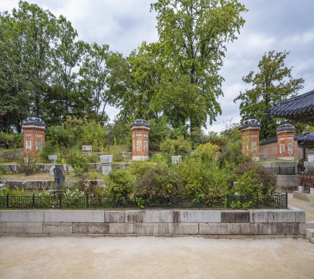 Behind Gyotaejeon Hall, there is an artificial mountain called Amisan Mountain. It is said that the mountain has gathered all the beauty of the palace, which features a terrace flower garden, decorated stonework, and four chimneys.