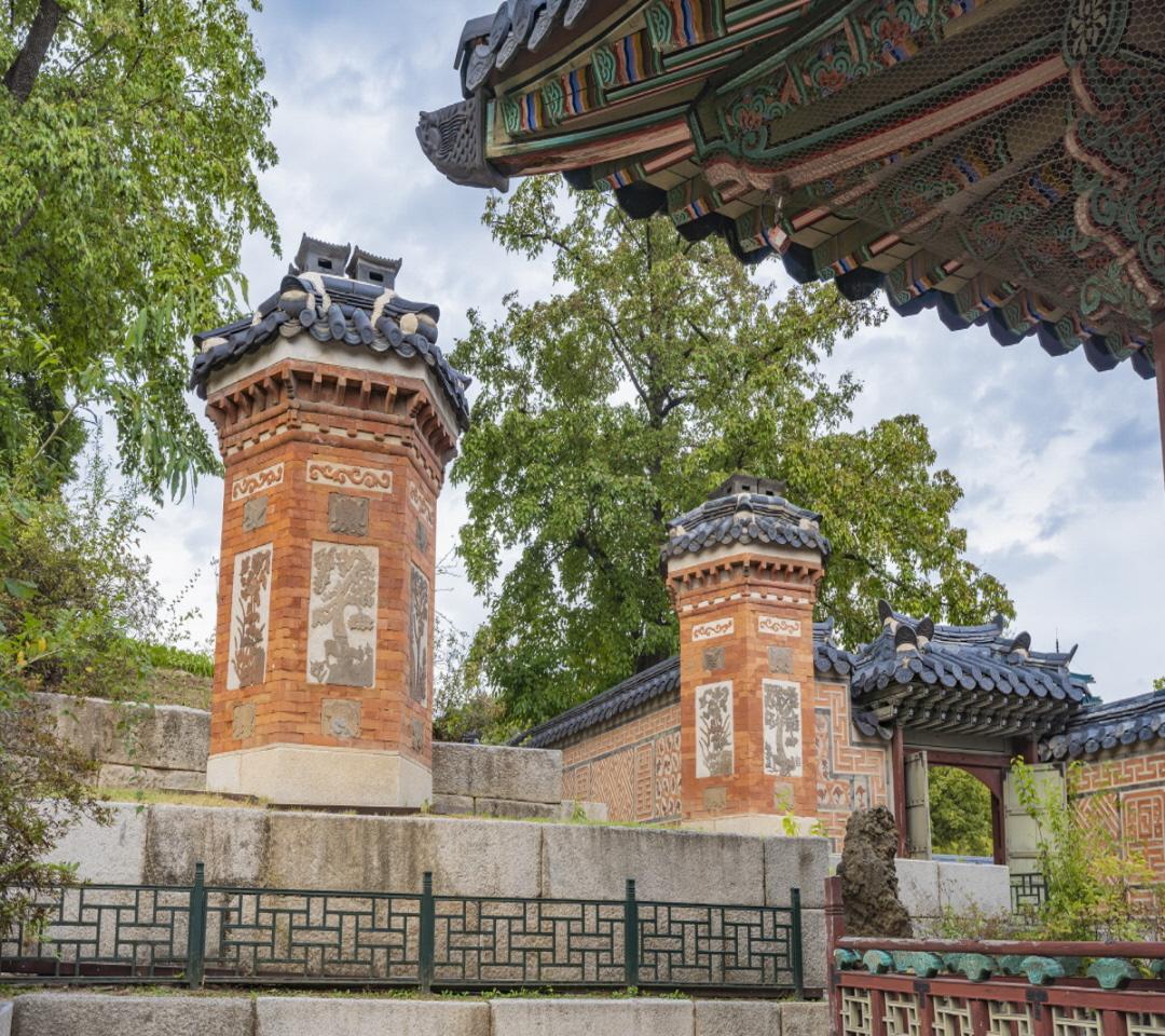 Also, there are four chimneys built on the upper stone platform of Amisan Mountain. They were made in 1865, during the second year of Emperor Gojong’s reign, when the Gyeongbokgung Palace was renovated. They are all in hexagon shape and engraved with some spectacular patterns and designs, such as a phoenix, a vine, and a Japanese apricot tree. Each pattern was arranged with baked bricks, and each gap between the bricks was filled with lime. Other patterns, like the Four Gracious Plants (plum, orchid, chrysanthemum, and bamboo), symbolized longevity, wealth, and rank, where auspicious animals were denoted to drive out evil spirits. The chimneys are not only formative art but were designed to emit smoke that passed through an Ondol, the floor heating system, of Gyotaejeon Hall.