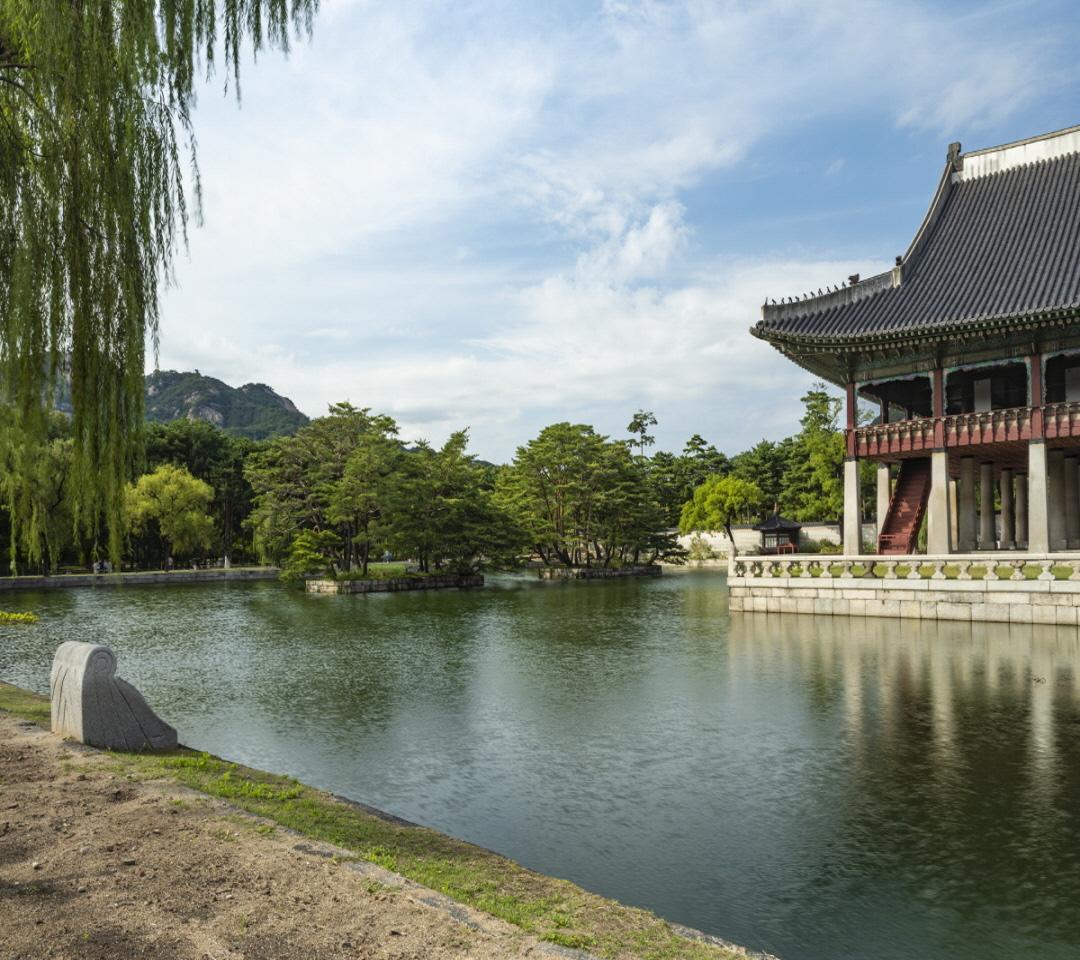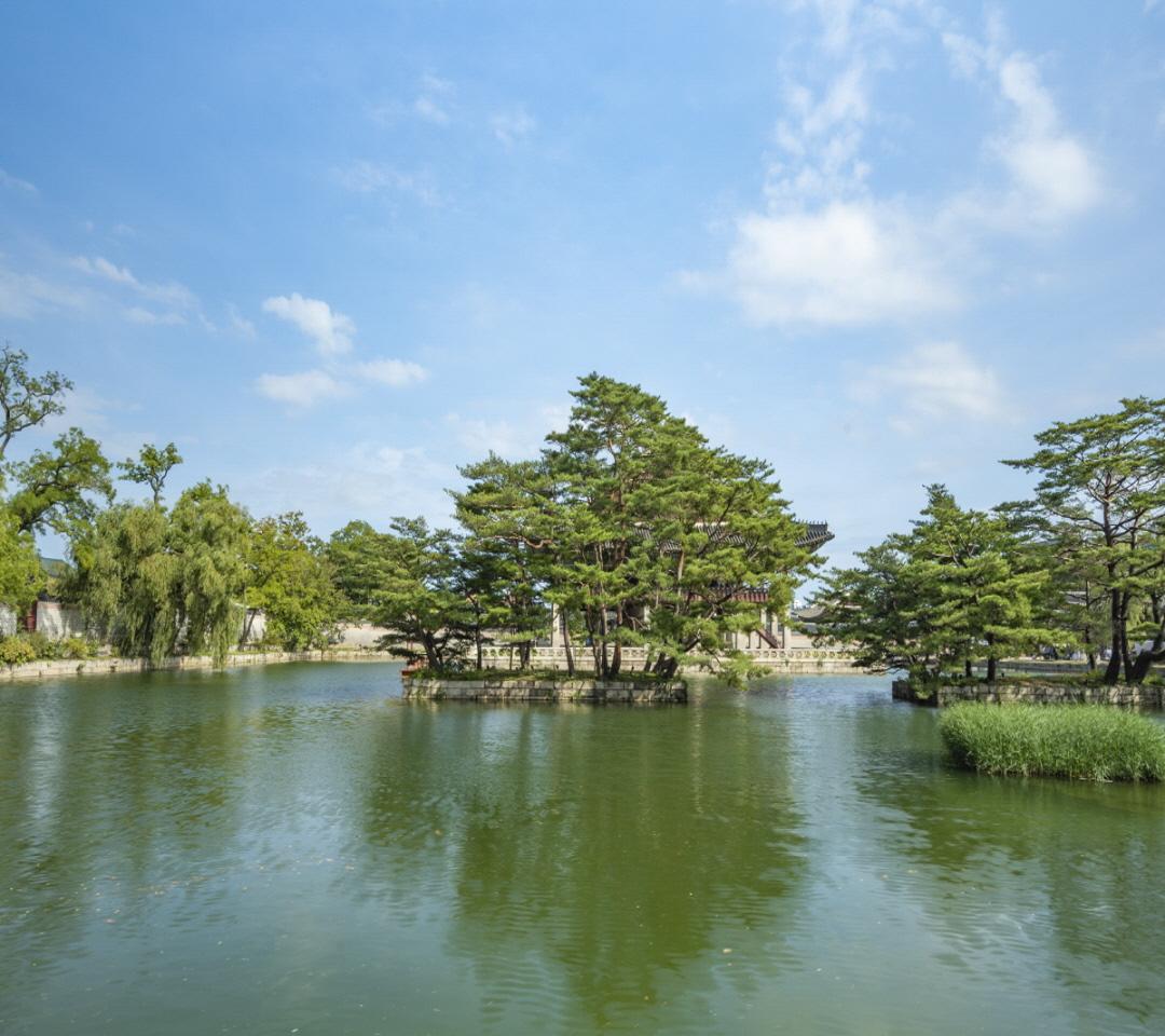 In the west of Geunjeongjeon Hall, you can find a large pond where willow trees flutter around. It, together the with Gyeonghoeru Pavilion in the center, shows astonishing scenery all year. Ponds of secret gardens are usually located in the forest, but the pond around Gyeonghoeru Pavilion is relatively out in the open air. The pond and the pavilion have created unique scenery that cannot be found in other palaces and have reflected the dignity of Gyeongbokgung Palace.