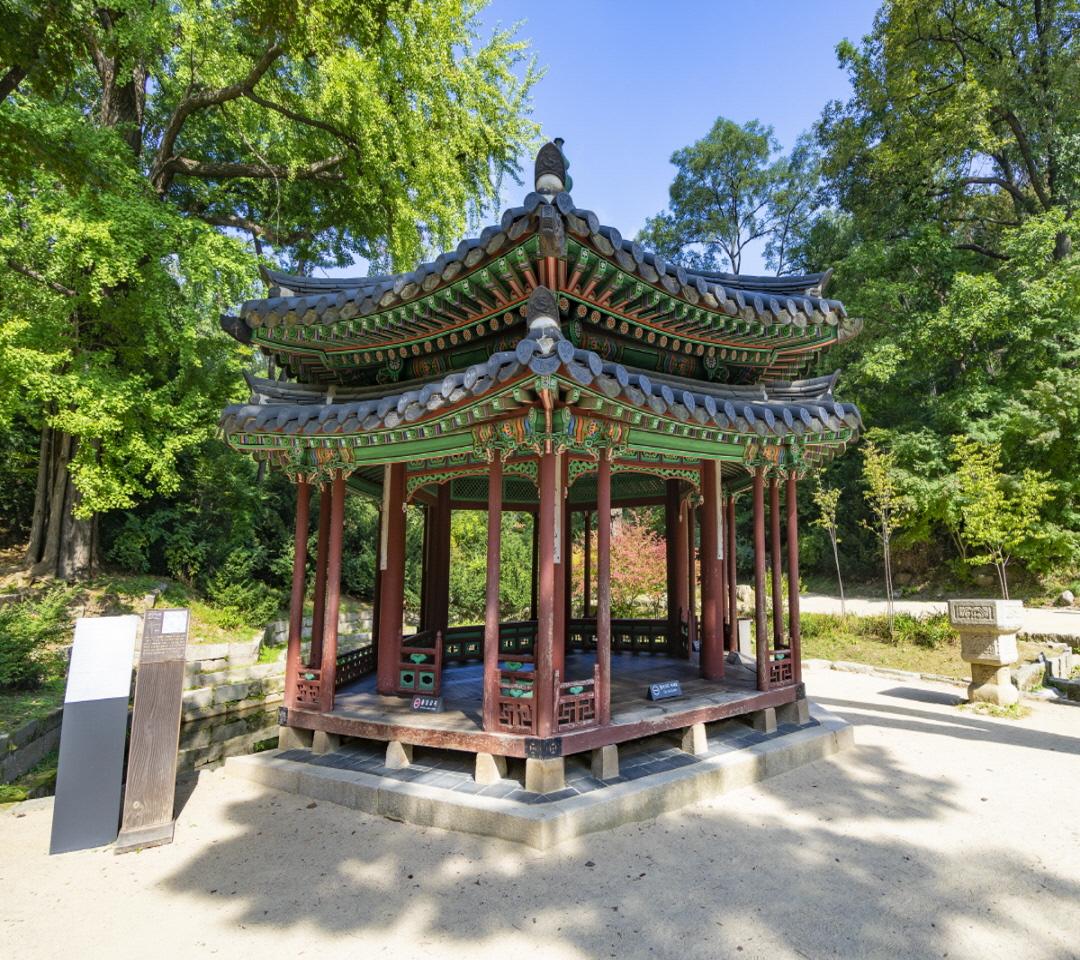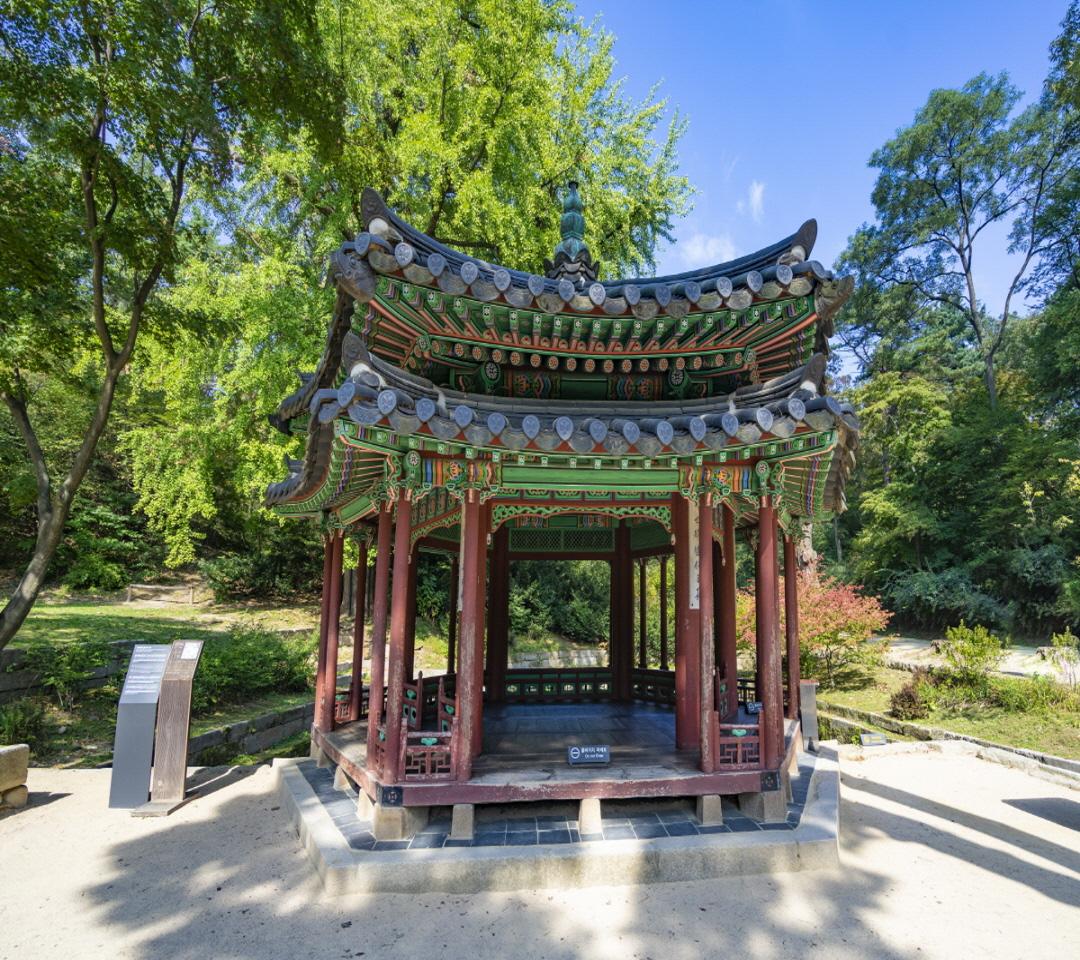 There are various pavilions in the Secret Garden. Among all the pavilions, Jondeokjeong Pavilion is unique and famous for its eye-catching two layers of hexagonal roof top. Due to its shape, it was also called “Yukmyeonjeong Pavilion”. The two layers both have pillars. The outer roof was supported by a group of three pillars at each corner to enhance the sleekness of the pavilion. Looking inside the pavilion, the ceiling was painted with a yellow and a blue dragon. Furthermore, it was said that originally, the signboard written by King Heonjong and poems handwritten by King Sukjong were hung in the pavilion. However, the signboard is currently not hanging there.
