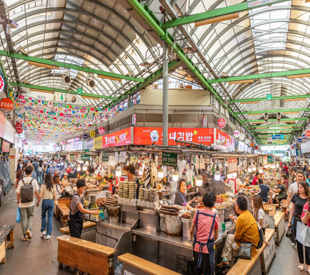 Now, we’re at Gwangjang Market. If you smell something nutty and very delicious, you're at the right place. Cross the road, and you’re at Gwangjang Market.