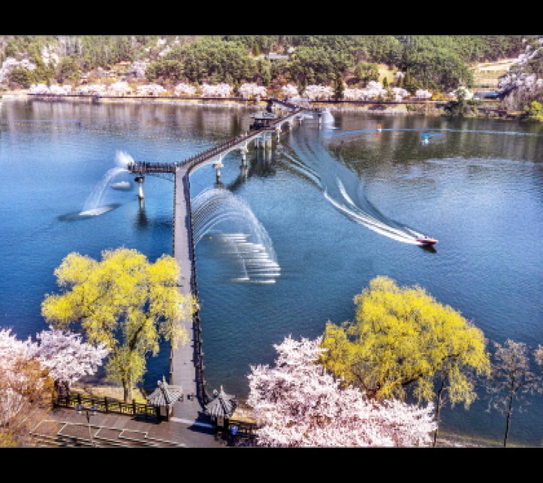 월영교에서 바라보는 분수는 화려한 조명과 함께 물줄기가 춤추며 한 여름밤의 낭만을 더해줍니다. 분수는 4월부터 10월까지 하루 네 번 가동하고, 휴가철인 7월부터 9월까지는 다섯 번을 가동합니다. 또, 황포돛배나 문보트를 타고 강바람을 맞으며 유유히 흐르는 강물을 즐길 수도 있습니다.