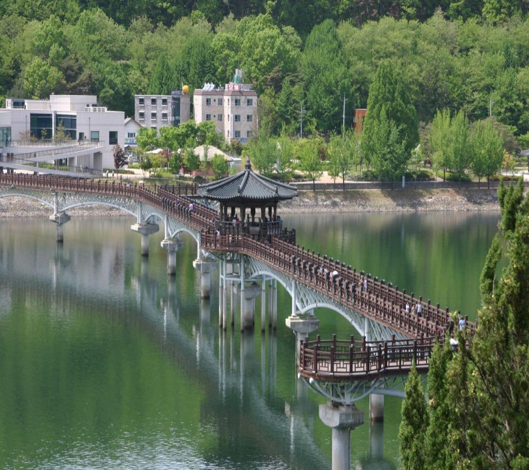 월영교는 이응태와 그의 아내의 아름답고 숭고한 사랑 이야기를 오래도록 기념하기 위해 만들어졌습니다. 먼저 세상을 떠난 남편을 그리워하며 자신의 머리카락으로 미투리를 엮었던 애틋한 사랑을 기리는 뜻에서 미투리를 모티브로 월영교가 만들어졌고, 다리 인근에는 테마길이 조성되었습니다.