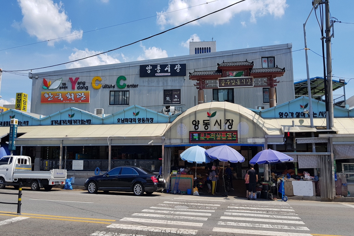 Located in the west of the Metropolitan City of Gwangju, this market is the biggest in the area, as well as in Honam, or the Jeolla Province. Along the Gwangju Stream, there are seven markets in total: Yangdong Market, Bokgae Market, a fishery market, a livestock market, a dried seafood market, Gyeongyeolro market, and an industrial goods market. These seven markets, when combined together, are called Yangdong Market.